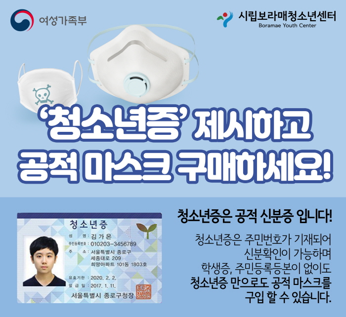 | [°øÁö] 'û¼Ò³âÁõ'À» Ȱ¿ëÇÑ °øÀû¸¶½ºÅ© ±¸¸Å ¾È³» | |||