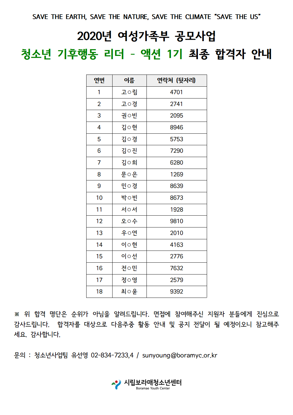 [°øÁö] û¼Ò³â ±âÈÄÇൿ ¸®´õ - ¾×¼Ç 1±â ÃÖÁ¾ ÇÕ°ÝÀÚ °øÁö | |||
