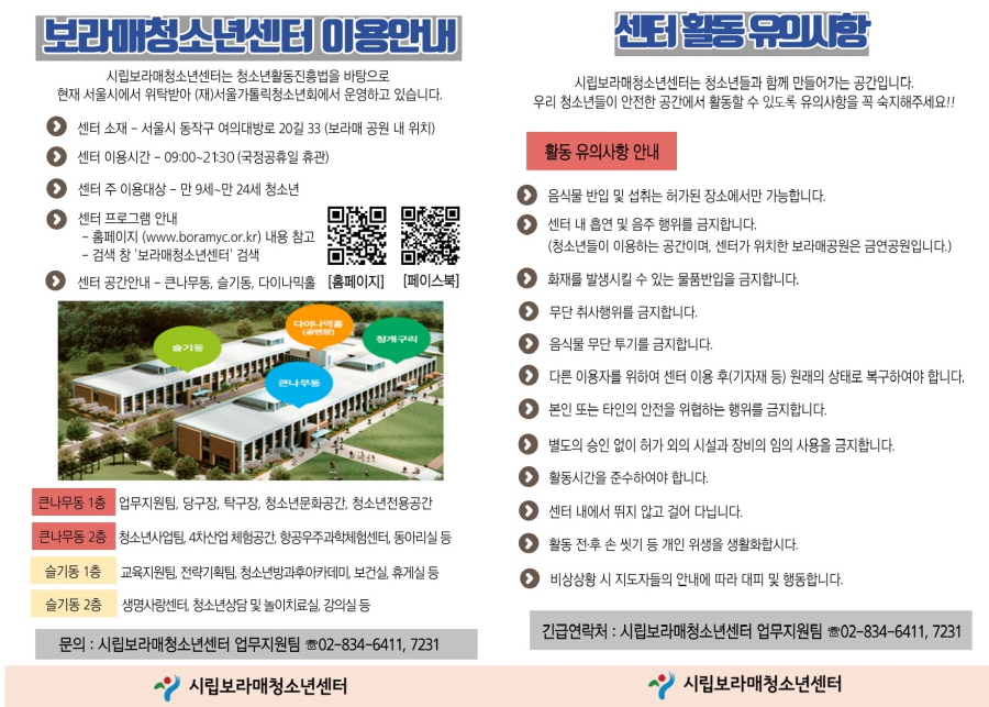 ÀÛ¼ºÀÚ : ½Ã¸³º¸¶ó¸Åû¼Ò³â¼¾ÅÍ(webmaster@boramyc.or.kr) ÀÛ¼ºÀÏ : 2021-02-22 Á¶È¸¼ö : 55467 | |||