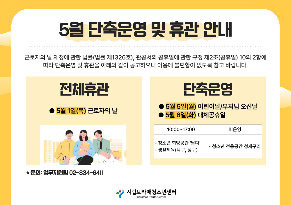 | [°øÁö] 5¿ù ´ÜÃà¿î¿µ ¹× ÈÞ°ü ¾È³» | |||