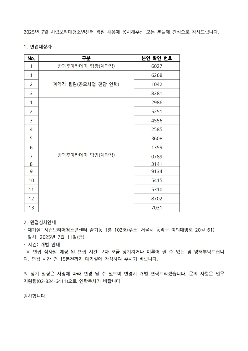 | [ä¿ë] [ä¿ë] 2025³â 7¿ù º¸¶ó¸Åû¼Ò³â¼¾ÅÍ Á÷¿ø ä¿ë ¼·ù ÇÕ°ÝÀÚ °øÁö | |||