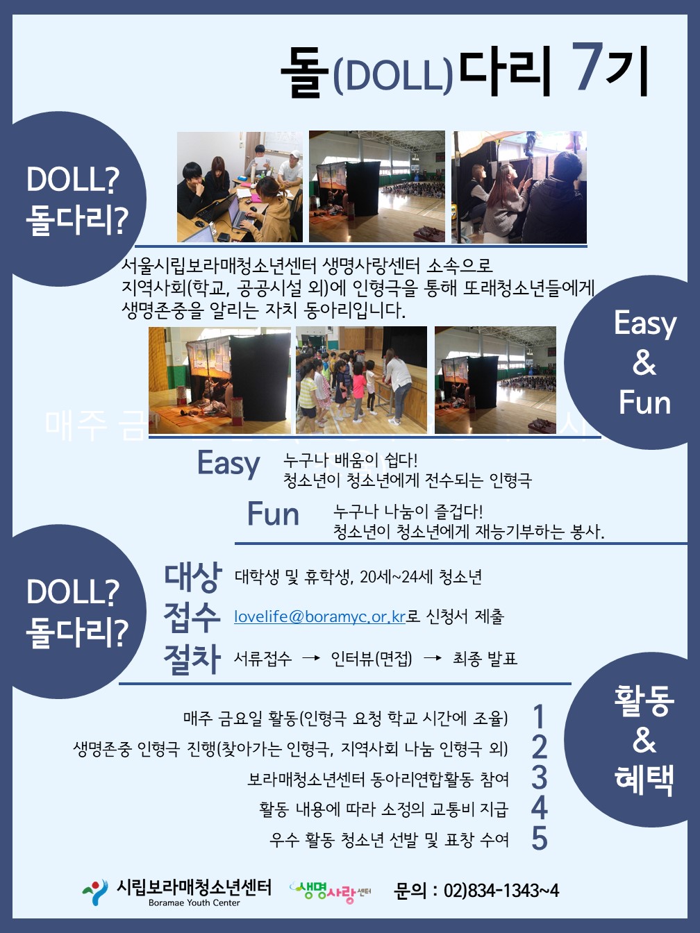 | [¸ðÁý] »ý¸í»ç¶û¼¾ÅÍ ÀÎÇü±Ø µ¿¾Æ¸® µ¹(Doll)´Ù¸® 7±â µ¿¾Æ¸®¿ø ¸ðÁý | |||
