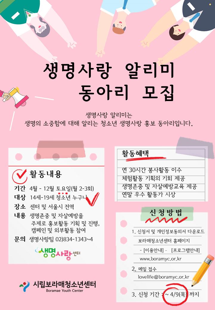 | [¸ðÁý] »ý¸í»ç¶û È«º¸ µ¿¾Æ¸® '»ý¸í»ç¶û ¾Ë¸®¹Ì' µ¿¾Æ¸®¿ø Ãß°¡ ¸ðÁý | |||