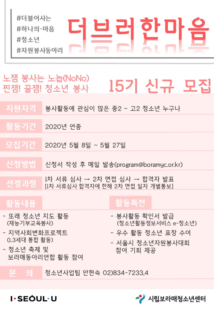 | [¸ðÁý] û¼Ò³âÀÚ¿øºÀ»çµ¿¾Æ¸® ´õºê·¯ÇѸ¶À½ 15±â Ãß°¡ ¸ðÁý °ø°í | |||