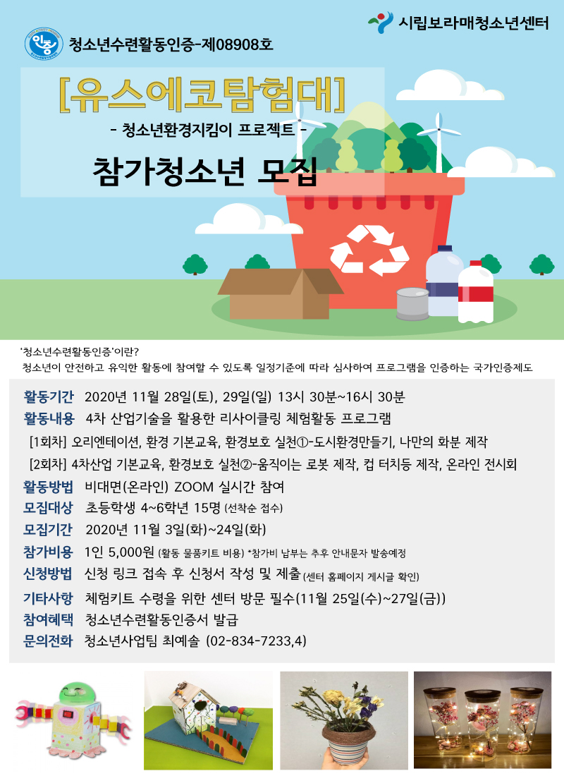 | ÀÛ¼ºÀÚ : û¼Ò³â»ç¾÷ÆÀ(program@boramyc.or.kr) ÀÛ¼ºÀÏ : 2020-11-14 Á¶È¸¼ö : 3901 | |||