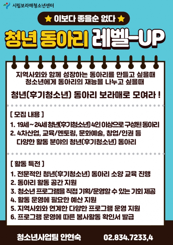 | ÀÛ¼ºÀÚ : û¼Ò³â»ç¾÷ÆÀ(program@boramyc.or.kr) ÀÛ¼ºÀÏ : 2021-01-23 Á¶È¸¼ö : 3524 | |||