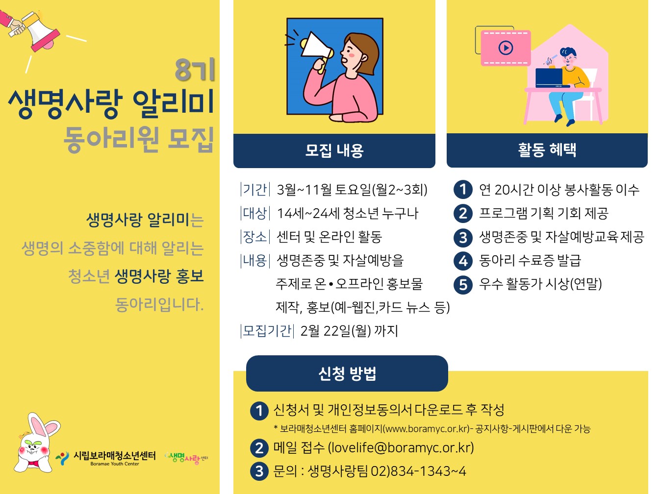 | [¸ðÁý] 2021 »ý¸í»ç¶û¼¾ÅÍ »ý¸í»ç¶û ¾Ë¸®¹Ì µ¿¾Æ¸®¿ø ¸ðÁý(»ý¸í»ç¶û È«º¸ µ¿¾Æ¸®) | |||