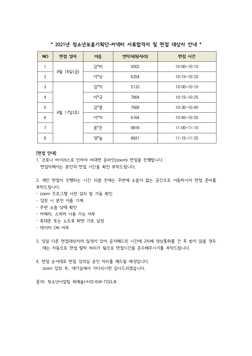 | [¸ðÁý] û¼Ò³âº¸ÈƱâȹ´Ü ¼·ùÇÕ°ÝÀÚ ¹× ¸éÁ¢´ë»óÀÚ ¾È³» | |||