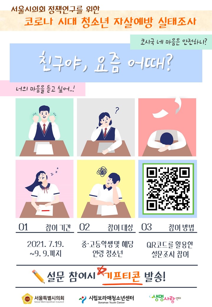 | [¾È³»] ¼¿ï½ÃÀÇȸ Á¤Ã¥¿¬±¸¸¦ À§ÇÑ [Äڷγª ½Ã´ë û¼Ò³â Àڻ쿹¹æ ½ÇÅÂÁ¶»ç] ÁøÇà ¾È³» | |||