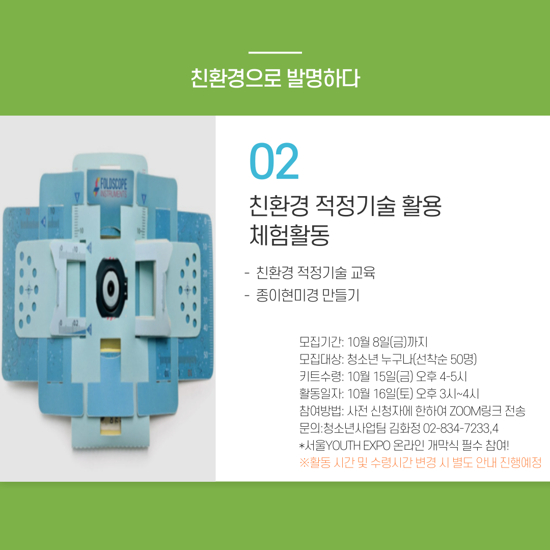 | [¸ðÁý] 2021 ¼¿ï YOUTH EXPO Âü¿©Ã»¼Ò³â ¸ðÁý(±â°£¿¬Àå) | |||
