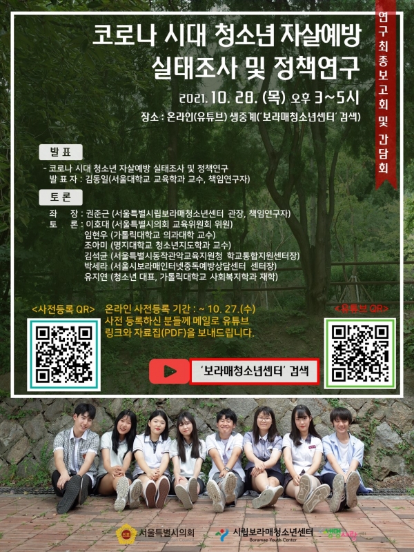 | [¾È³»] 'Äڷγª ½Ã´ë û¼Ò³â Àڻ쿹¹æ ½ÇÅÂÁ¶»ç ¹× Á¤Ã¥¿¬±¸' ÃÖÁ¾º¸°íȸ °³ÃÖ ¾È³» | |||