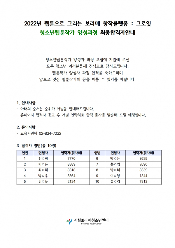 | [¾È³»] 2022³â À¥Å÷À¸·Î ±×¸®´Â º¸¶ó¸Å âÀÛÇ÷§Æû : ±×·ÎÀÕ Ã»¼Ò³âÀ¥Å÷ÀÛ°¡ ¾ç¼º°úÁ¤ ÃÖÁ¾ÇÕ°ÝÀÚ ¾È³» | |||