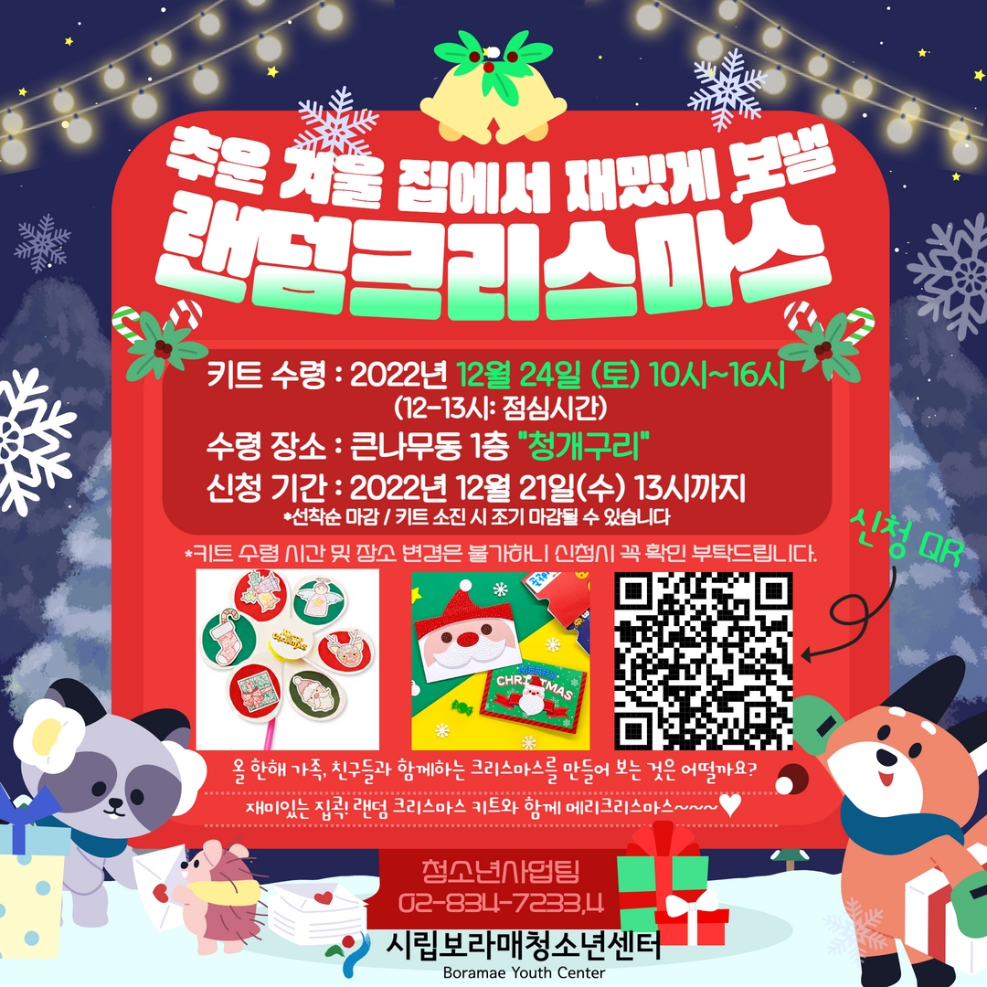 | [¸ðÁý] 2022 ¼¿ïÀ¯½ºµ¥ÀÌ x ·£´ýÅ©¸®½º¸¶½º Âü¿© û¼Ò³â ¸ðÁý(~12/21±îÁö) | |||