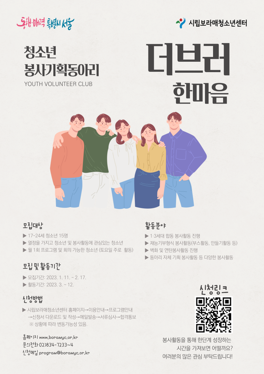 | ÀÛ¼ºÀÚ : û¼Ò³â»ç¾÷ÆÀ(program@boramyc.or.kr) ÀÛ¼ºÀÏ : 2023-02-03 Á¶È¸¼ö : 777 | |||