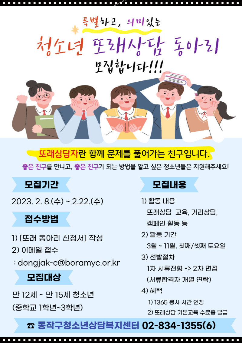 | [¸ðÁý] À¯°ü±â°ü µ¿ÀÛ±¸Ã»¼Ò³â»ó´ãº¹Áö¼¾ÅÍ 'û¼Ò³â¶Ç·¡»ó´ãµ¿¾Æ¸®' ¸ðÁý ¾È³» | |||