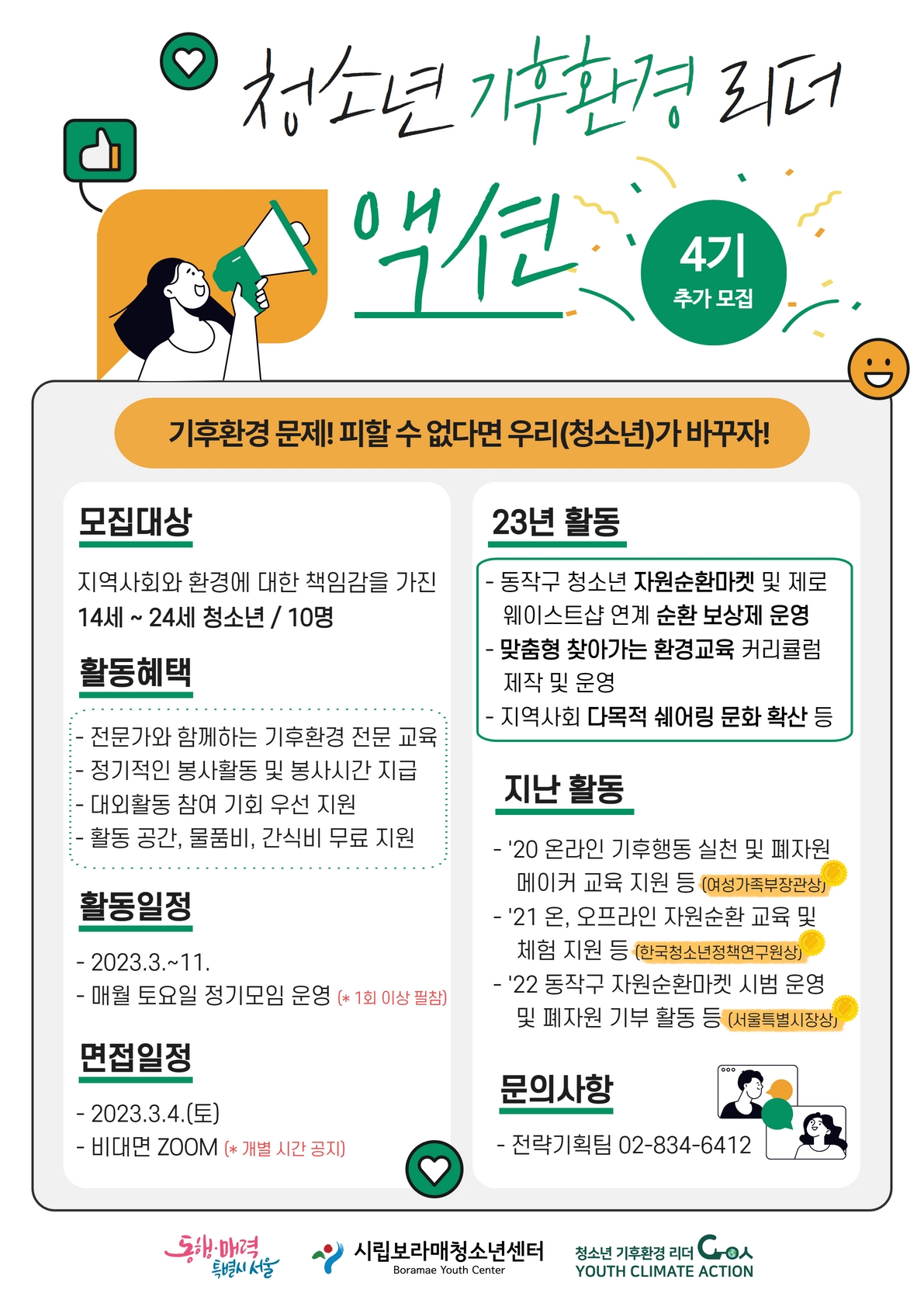 | [¸ðÁý] 2023³â û¼Ò³â ±âÈÄȯ°æ ¸®´õ - ¾×¼Ç 4±â Ãß°¡ ¸ðÁý (~3/1±îÁö) | |||||