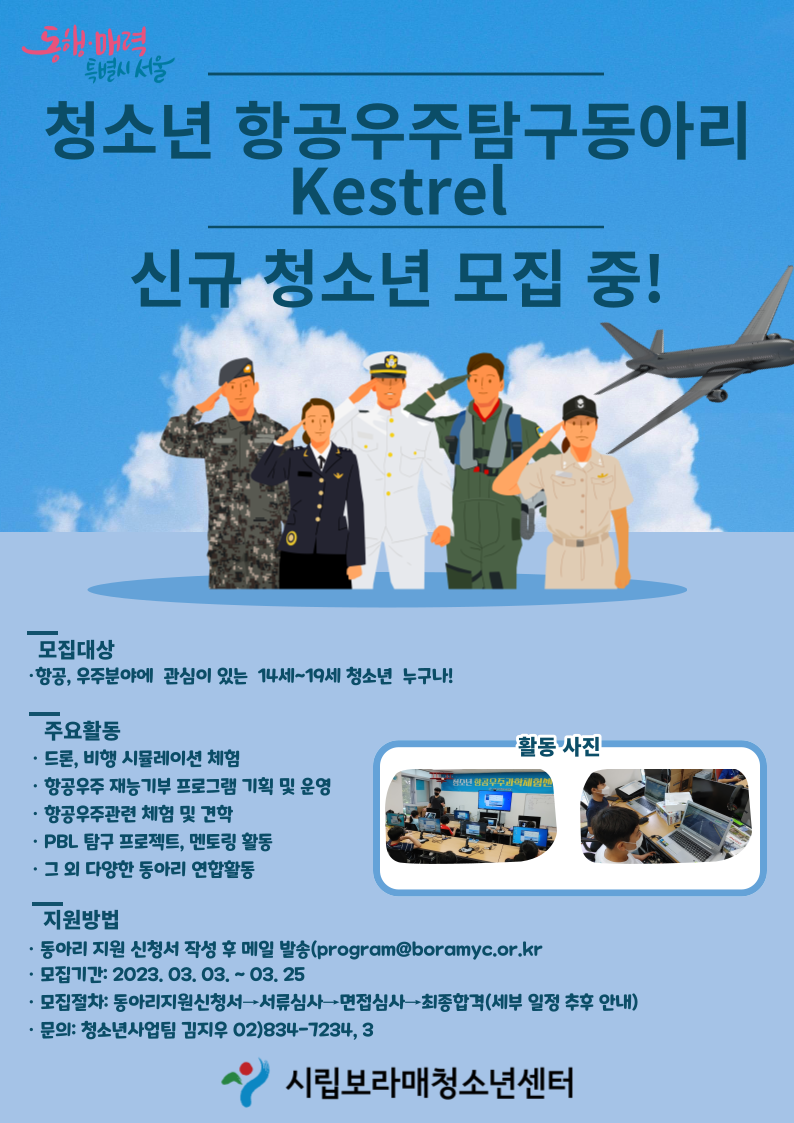 | [¸ðÁý] 2023³â û¼Ò³â Ç×°ø¿ìÁÖŽ±¸µ¿¾Æ¸® Kestrel Ãß°¡ ¸ðÁý(~3/25±îÁö) | |||