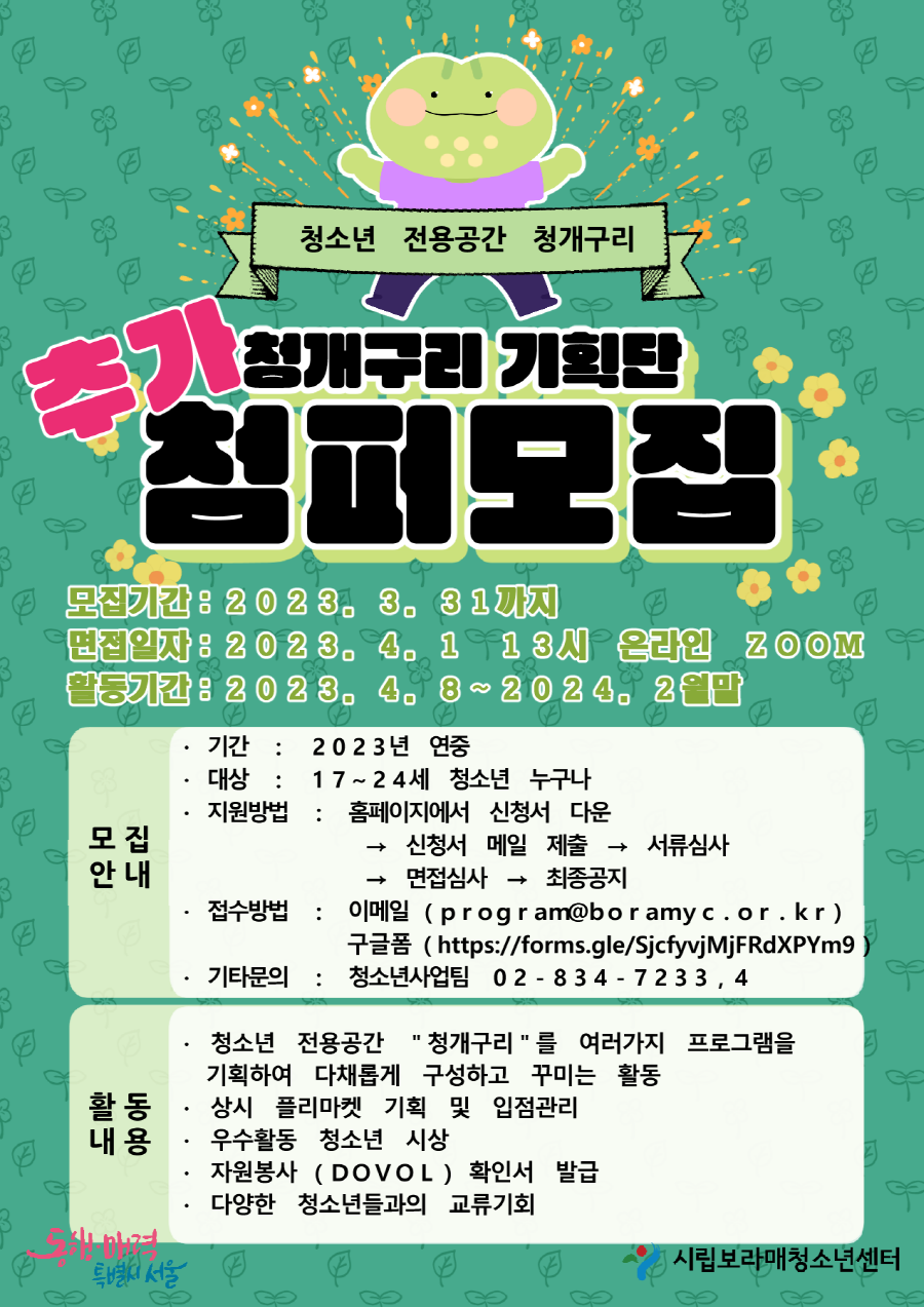 | [¸ðÁý] 2023³â û°³±¸¸® ±âȹ´Ü ÷ÆÛ Ãß°¡¸ðÁý(~3/31) | |||