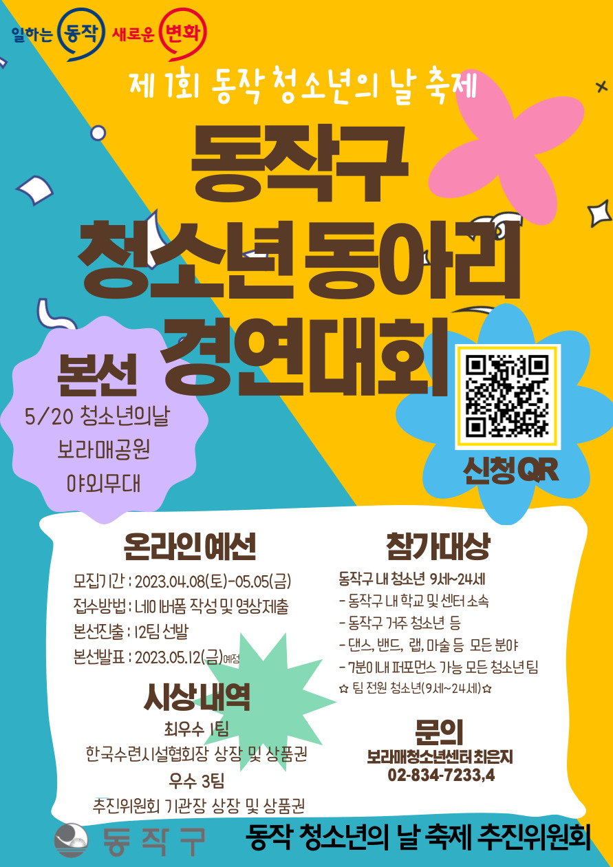 | [¸ðÁý] Á¦ 1ȸ µ¿ÀÛ Ã»¼Ò³âÀÇ ³¯ ÃàÁ¦ [µ¿ÀÛ±¸ û¼Ò³â µ¿¾Æ¸® °æ¿¬´ëȸ] Âü°¡ µ¿¾Æ¸® ¸ðÁý | |||