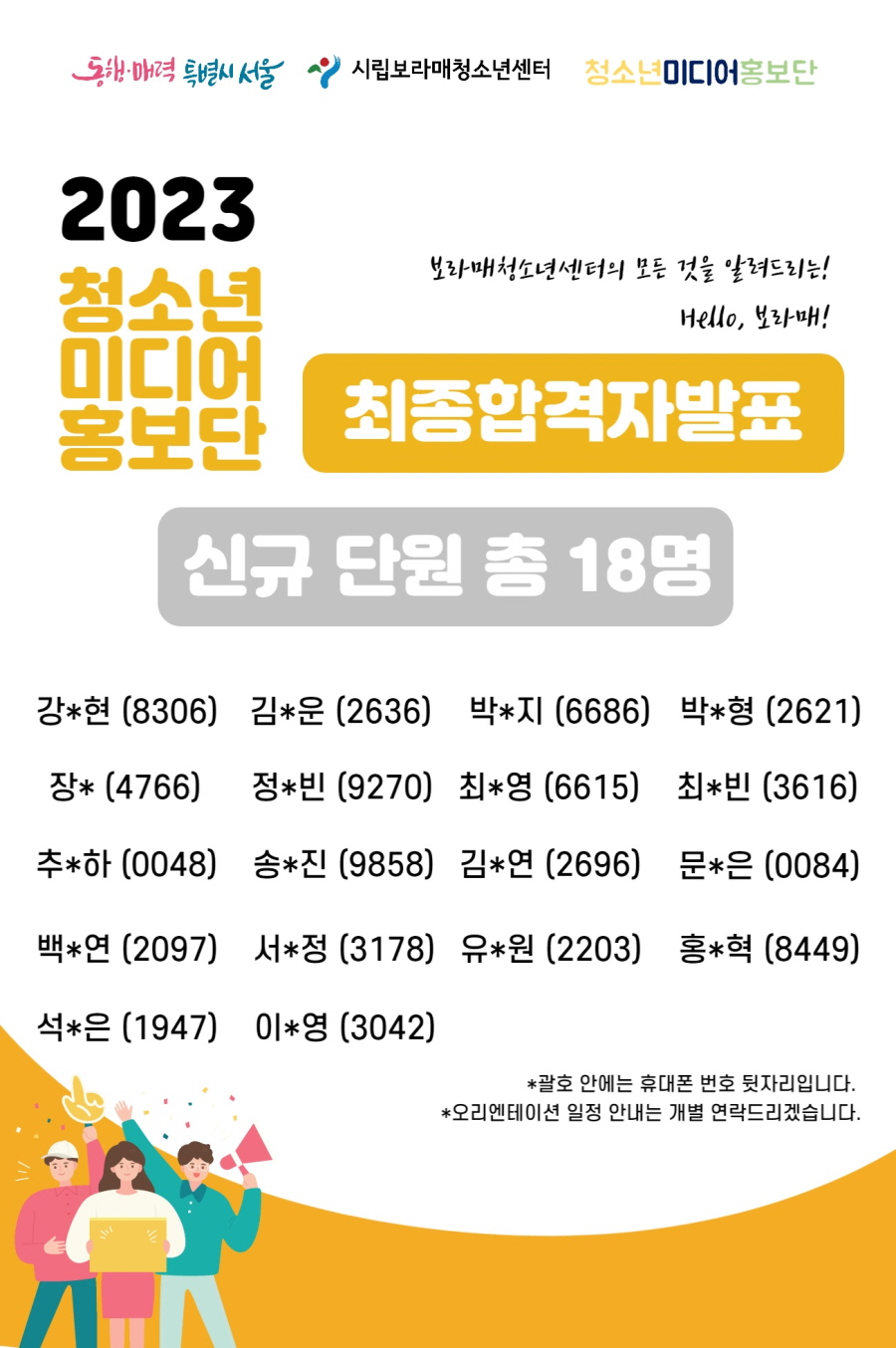 | [¾È³»] 2023³â û¼Ò³â¹Ìµð¾îÈ«º¸´Ü - ´Ù¸ÀǪ¸¥´©¸® ÃÖÁ¾ÇÕ°ÝÀÚ ¹ßÇ¥(2Â÷) | |||