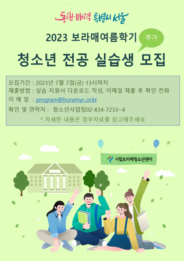 | [¸ðÁý] 2023³âµµ ¿©¸§Çбâ û¼Ò³â Àü°ø ½Ç½À»ý Ãß°¡ ¸ðÁý ¾È³» | |||||