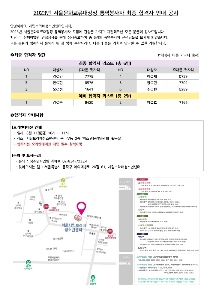 | [¾È³»] 2023³â ¼¿ï¹®È±³·ù´ëÀåÁ¤ Å뿪ºÀ»çÀÚ ÃÖÁ¾ÇÕ°ÝÀÚ °øÁö ¾È³» | |||