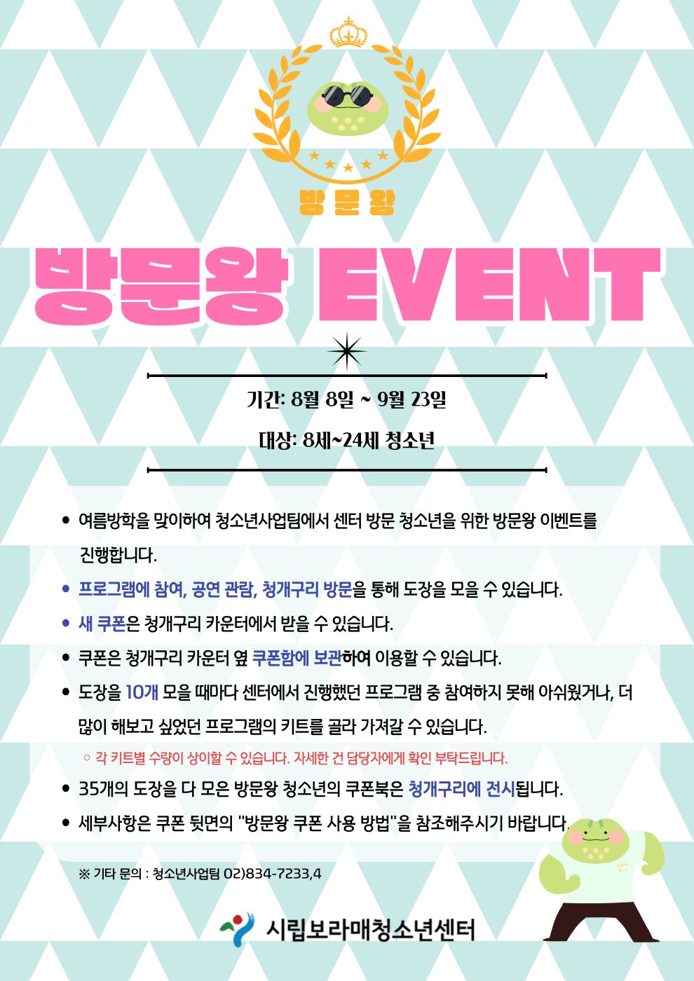 | [¾È³»] ¹æ¹®¿Õ À̺¥Æ® Âü¿© ¾È³» (8/8~9/23) | |||