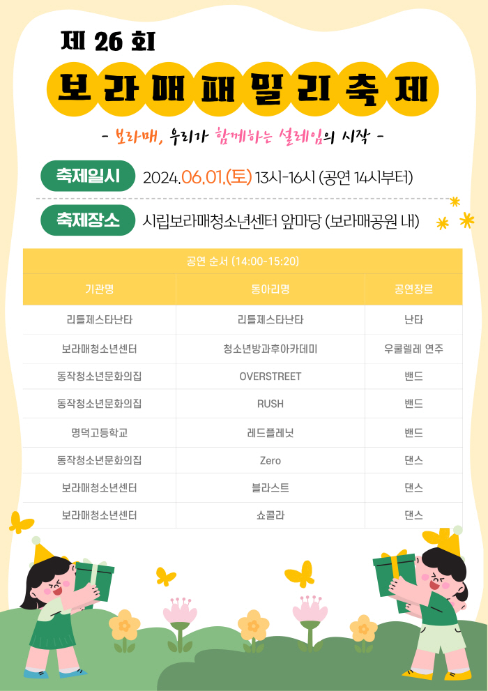 | [¾È³»] 6¿ù 1ÀÏ(Åä), Á¦ 26ȸ º¸¶ó¸ÅÆÐ¹Ð¸®ÃàÁ¦ Çà»ç ¾È³» | |||