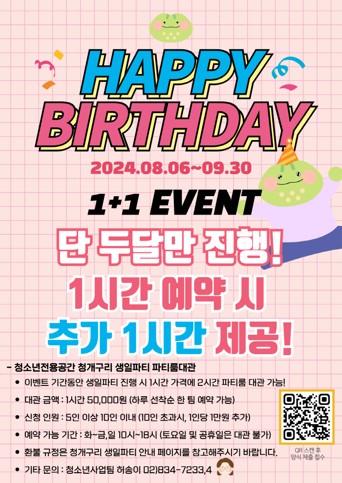 | [¸ðÁý] û°³±¸¸® »ýÀÏÆÄÆ¼ ´ë°ü 1+1 À̺¥Æ® | |||