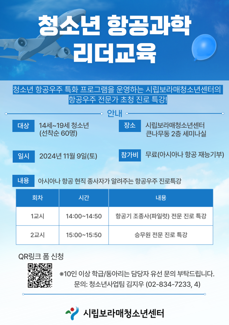 | [¸ðÁý] û¼Ò³â Ç×°ø°úÇÐ ¸®´õ±³À° Âü°¡ÀÚ ¸ðÁý(¾Æ½Ã¾Æ³ª Ç×°ø ¿¬°è Áø·ÎƯ°) (Æ÷½ºÅÍ QR ±¸±ÛÆû ½Åû) | |||