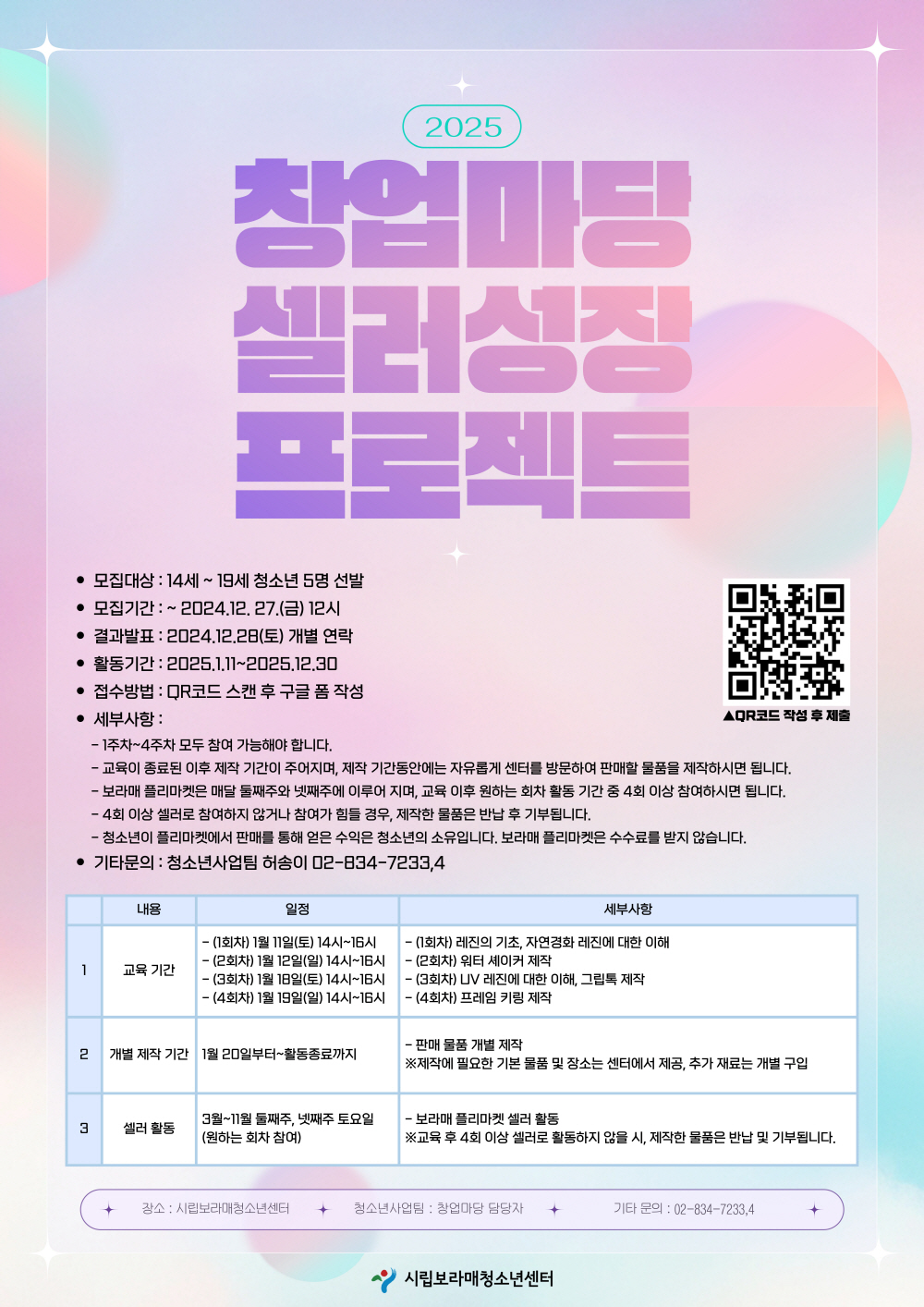 | ÀÛ¼ºÀÚ : û¼Ò³â»ç¾÷ÆÀ(program@boramyc.or.kr) ÀÛ¼ºÀÏ : 2024-12-18 Á¶È¸¼ö : 305 | |||