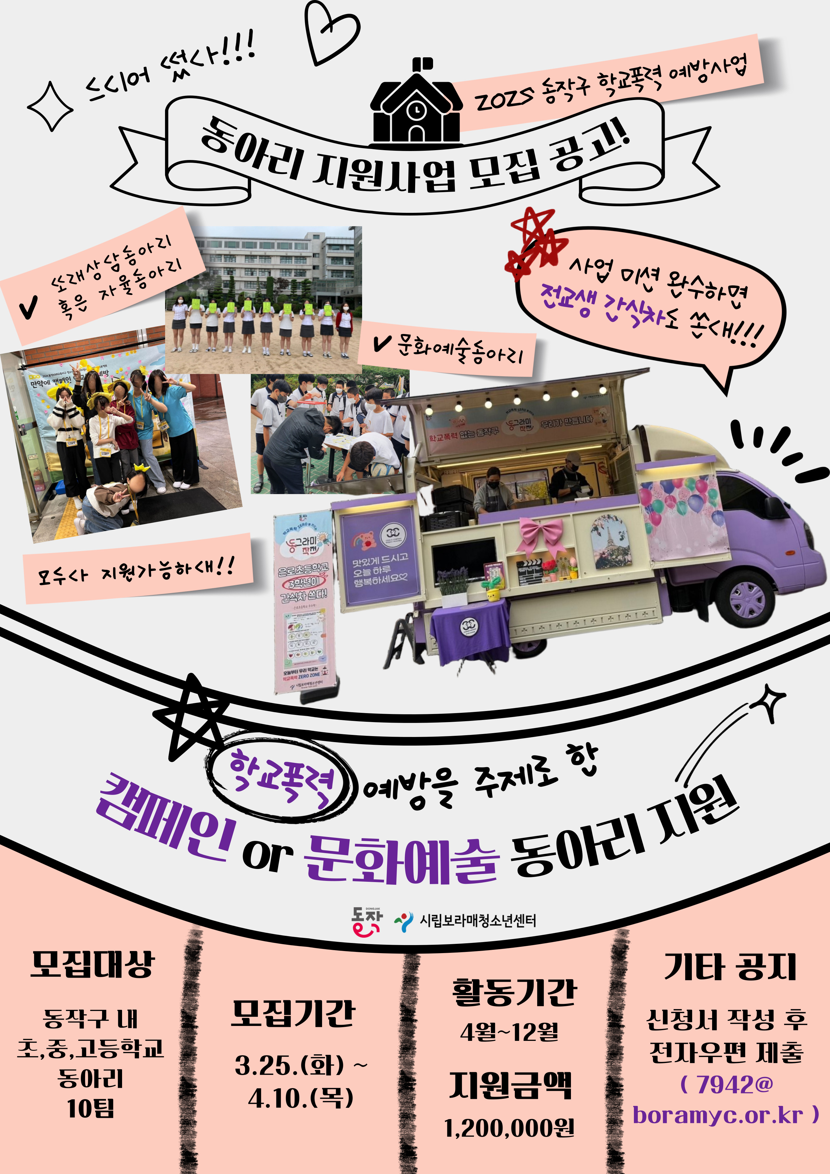 [¸ðÁý] 2025 µ¿ÀÛ±¸ Çб³Æø·Â ¿¹¹æÈ°µ¿ µ¿¾Æ¸® ¸ðÁý ¾È³»¹® | |||