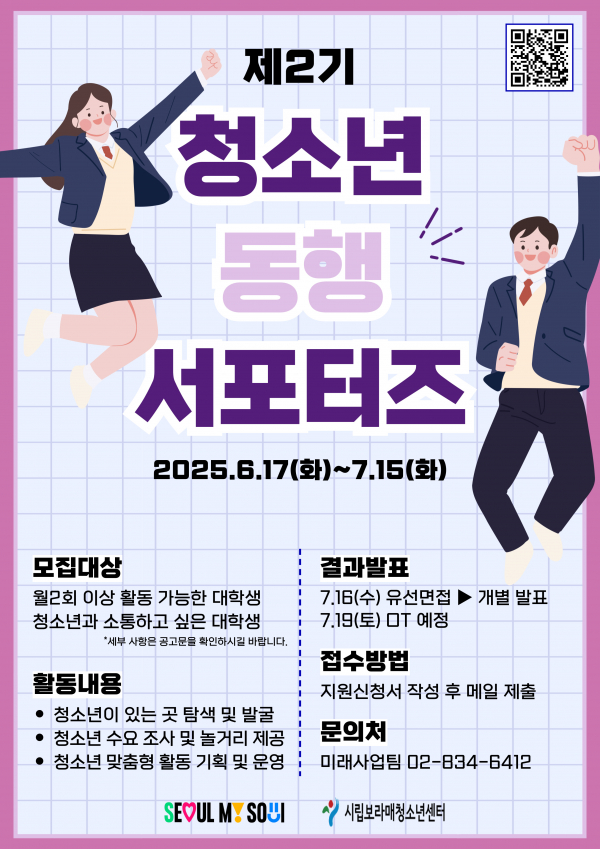 | [¸ðÁý] 2025³â ÇöÀå¸ÂÃãÇüȰµ¿ 'û¼Ò³âµ¿Çà¼Æ÷ÅÍÁî' 2±â Ãß°¡ ¸ðÁý | |||