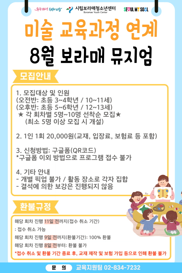 [¸ðÁý] ¹Ì¼ú ±³À°°úÁ¤ ¿¬°è ÇÁ·Î±×·¥ - º¸¶ó¸Å¹ÂÁö¾ö 8¿ù Ŭ·¡½º (¡Ú±¸±ÛÆû ½Åû¼ Á¦Ãâ Çʼö!!) | |||