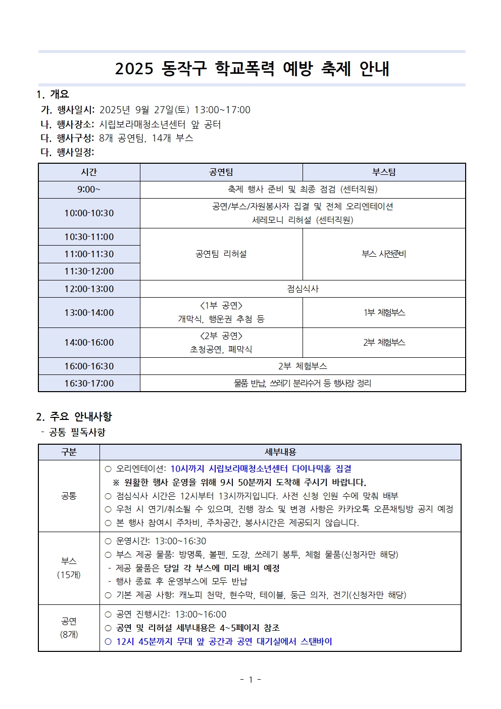 [¾È³»] 2025³â µ¿ÀÛ±¸ Çб³Æø·Â ¿¹¹æÃàÁ¦ À§·Î½É±â ´ëÀÛÀü ºÎ½º ¹× °ø¿¬ Âü¿©ÀÚ ¾È³» | |||