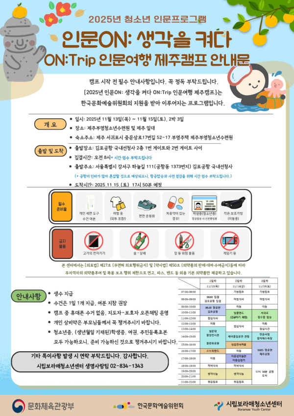 | [¾È³»] 2025 û¼Ò³â Àι®ÇÁ·Î±×·¥ – Àι® ON : Trip Àι®¿©Çà Á¦ÁÖÄ·ÇÁ Âü°¡ÀÚ ¾È³» | |||