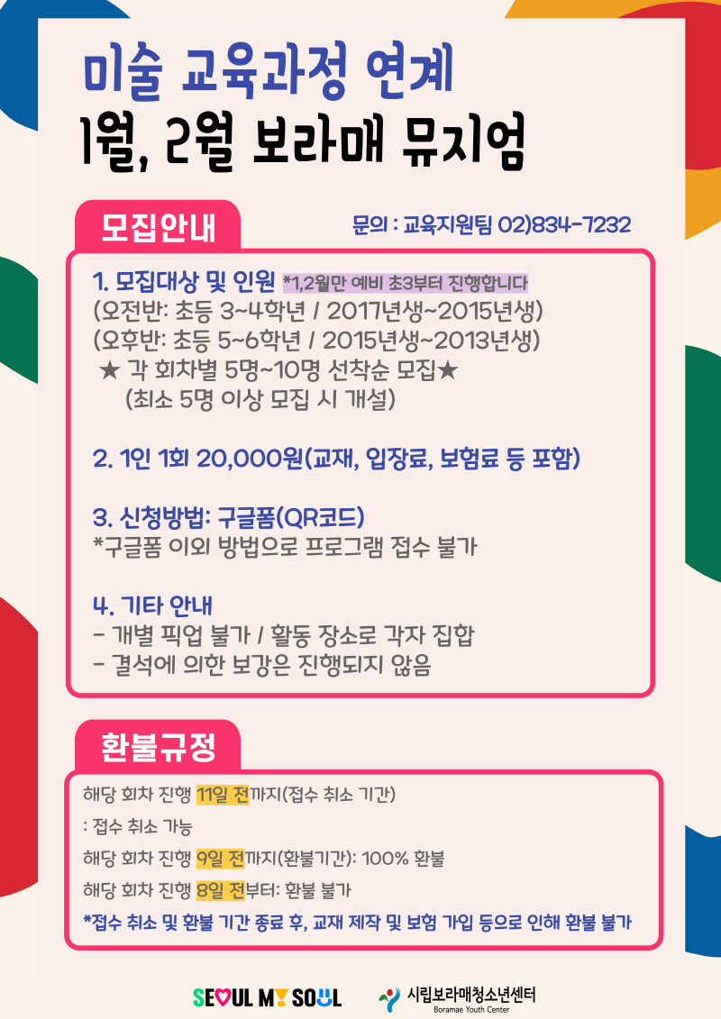 📢 ¹Ì¼ú ±³À°°úÁ¤ ¿¬°è2025³â 1¡¤2¿ù º¸¶ó¸Å ¹ÂÁö¾ö ÇÁ·Î±×·¥ Âü¿©ÀÚ ¸ðÁý¹Ì¼ú ±³°ú ³»¿ë°ú ¿¬°èÇÑ Ã¼Çè Á᫐ ±³À° ÇÁ·Î±×·¥ º¸¶ó¸Å ¹ÂÁö¾ö!! ´Ü¼ø °ü¶÷ÀÌ ¾Æ´Ñ ¼³¸í–üÇè–±³Àç Ȱµ¿ÀÌ ¿¬°èµÈ ¼ö¾÷ ¹æ½ÄÀ¸·Î, û¼Ò³âÀÇ ¿¹¼úÀû °¨¼ö¼º, °üÂû·Â, »ç°í·Â Çâ»óÀ» µ½°í ¶Ç·¡¿ÍÀÇ ¼ÒÅëÀ» ÅëÇØ ÇнÀ ¸ôÀÔµµ¸¦ ³ôÀÔ´Ï´Ù. ±³°ú ¿¬°è ÇнÀ°ú ÁÖ¸» üÇè Ȱµ¿À» µ¿½Ã¿¡ °æÇèÇÒ ¼ö ÀÖ´Â ²À!! ±¸±ÛÆûÀ¸·Î ½Åû ÇØÁÖ¼Å¾ß ½Åû ¿Ï·á ó¸® µË´Ï´Ù~! ½Åû¼ ÀÛ¼ºÇÏ·¯ °¡±â ¡å¡å¡å¡å¡å¡å https://forms.gle/CEShBbaqSmPjfwD3A ¹®ÀÇ : ±³À°Áö¿øÆÀ 02) 834-7232