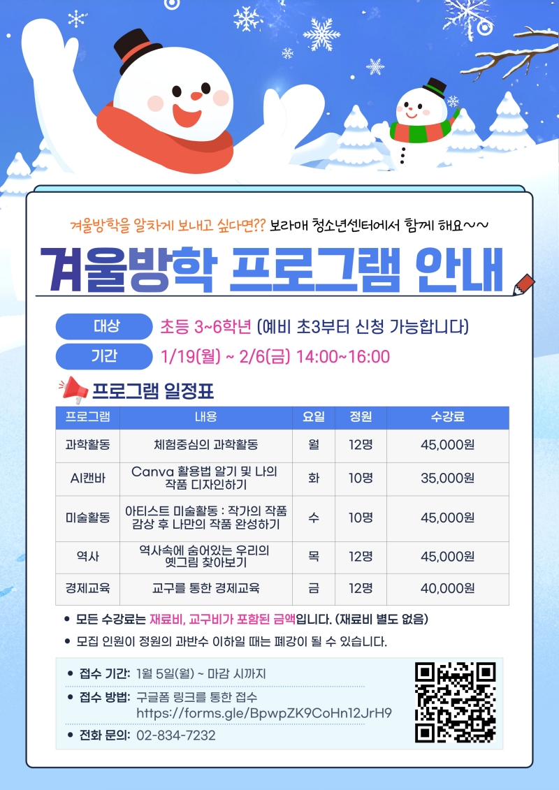 º¸¶ó¸Åû¼Ò³â¼¾ÅÍ °Ü¿ï¹æÇÐ ÇÁ·Î±×·¥°ú ÇÔ²² ´Ù¾çÇÑ Ã¼Çè Ȱµ¿À¸·Î ¹è¿ò°ú Áñ°Å¿òÀ» µ¿½Ã¿¡ °æÇèÇØ º¸¼¼¿ä!