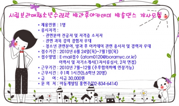 | ÀÛ¼ºÀÚ : º¸¶ó¸Åû¼Ò³â¼ö·Ã°ü() ÀÛ¼ºÀÏ : 2010-06-24 Á¶È¸¼ö : 3544 | |||