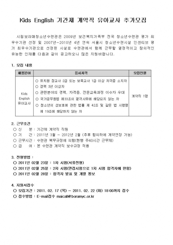 | º¸¶ó¸Å Kids English À¯¾Æ±³»ç Ãß°¡¸ðÁý | |||