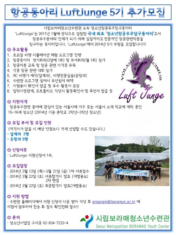 | [Ãß°¡¸ðÁý]2014³â Ç×°øµ¿¾Æ¸® LuftJunge 5±â ¸ðÁý | |||
