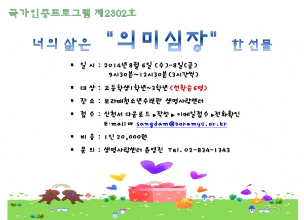 | ´ÙÀ½±Û | [»ý¸í»ç¶û¼¾ÅÍ] ÇϹݱâ ÀÎÇü±Ø ¿¹¹æ°»ç ¸ðÁý |