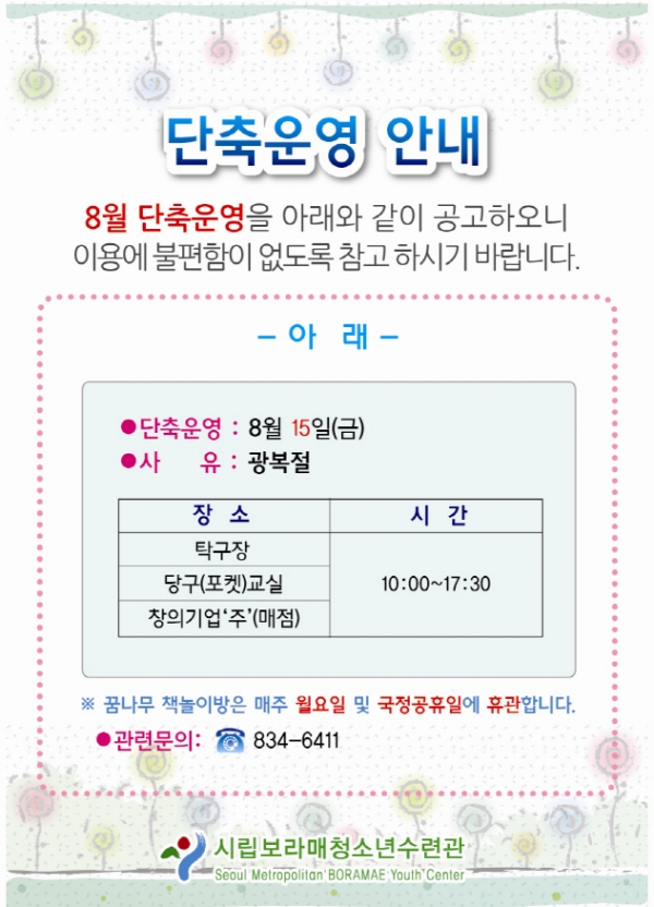 | 8¿ù ´ÜÃà¿î¿µ ¾È³» | |||