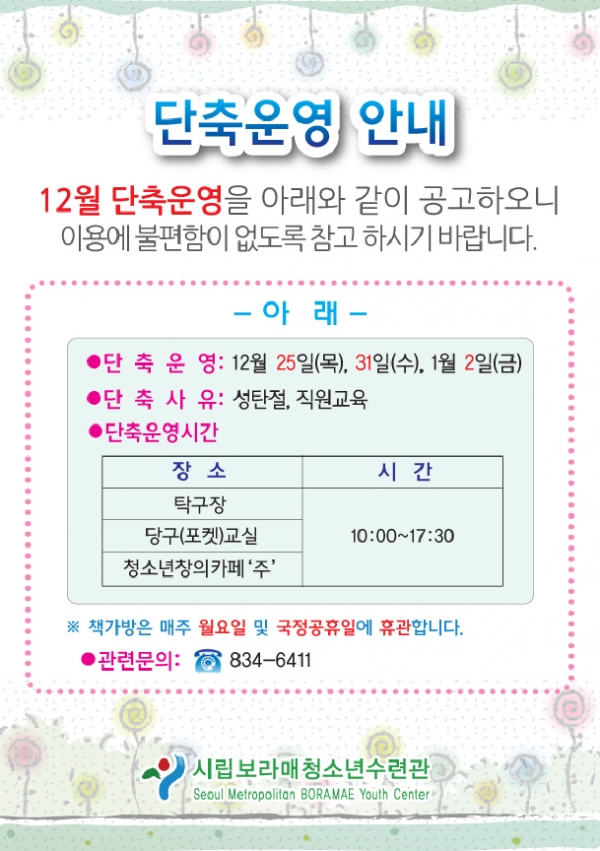 | 12¿ù ´ÜÃà¿î¿µ ¾È³» | |||