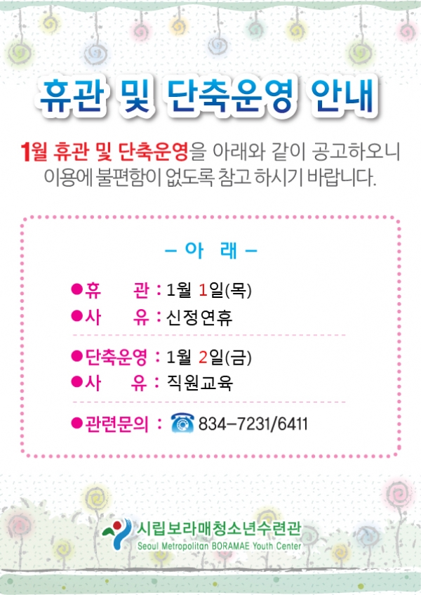| 2015³â 1¿ù ¼ö·Ã°ü ÈÞ°ü ¹× ´ÜÃà¿î¿µ ¾È³» | |||