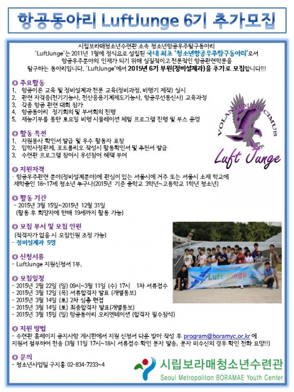 | ÆÄÀÏ÷ºÎ : Ç×°øµ¿¾Æ¸® Ãß°¡¸ðÁý(Á¤ºñ¼³°è°ú) Æ÷½ºÅÍ.jpg LuftJunge Áö¿ø½Åû¼(Á¤ºñ¼³°è°ú Ãß°¡¸ðÁý).hwp | |||