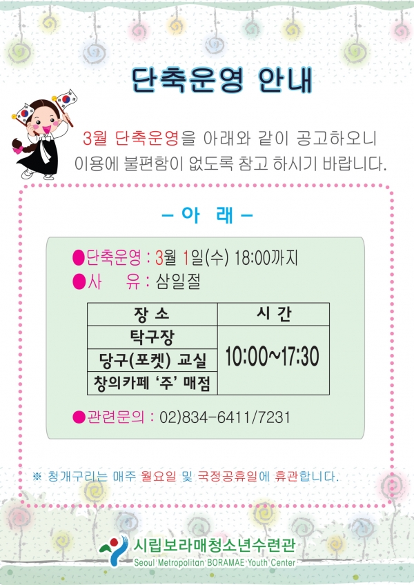 | 3¿ù ´ÜÃà¿î¿µ ¾È³» | |||