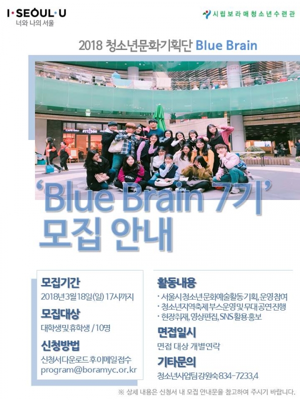 | ÆÄÀÏ÷ºÎ : û¼Ò³â¹®È±âȹ´Übluebrain.jpg û¼Ò³â¹®È±âȹ´Ü7±â ¸ðÁý ¾È³» ¹× ½Åû¼ ¾ç½Ä(¿Ï·á).hwp | |||