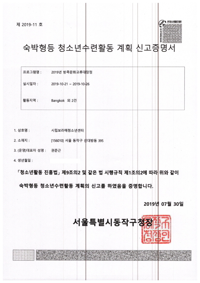 | [°øÁö] û¼Ò³â¼ö·ÃȰµ¿½Å°í °íÁö - 2019³â ¹æÄÛ¹®È±³·ù´ëÀåÁ¤ | |||
