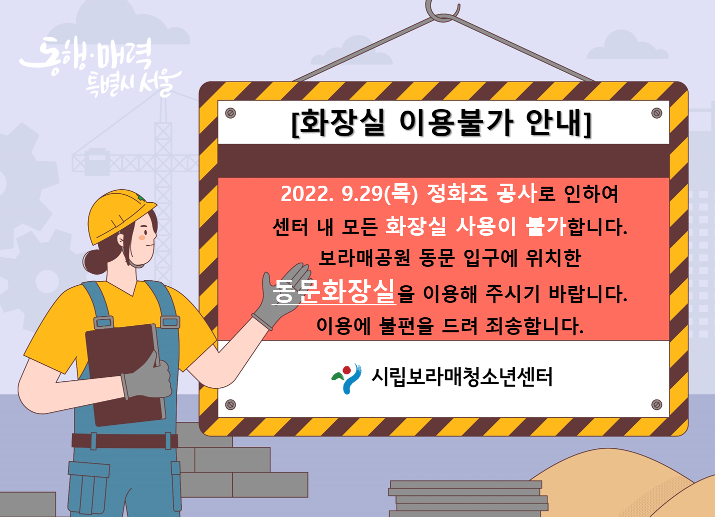 | [°øÁö] Á¤ÈÁ¶ °ø»ç·Î ÀÎÇÑ ¼¾ÅÍ ³» ÈÀå½Ç »ç¿ëºÒ°¡ ¾È³» | |||